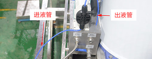 至3噸加鹽500克,再將鹽水桶加滿水并攪勻,然后將鹽水泵進(jìn)液管放進(jìn)鹽水桶。