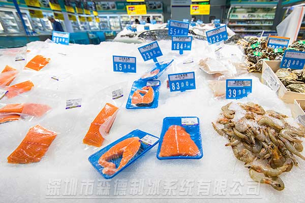 一、生鮮超市保鮮,用碎冰機(jī)把冰塊打碎,冰臺上鋪滿冰沙,可用于超市的海鮮、水產(chǎn)、雞、鴨、肉類保鮮。
