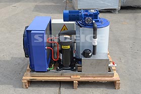 片冰機產量是指運行24小時總重量,如日產10噸片冰機,是指運行24小時,生產10噸冰片。但日產量也是有浮動的,比如夏天產量可能會少些,冬天產量會多些。白天產量會少點,而晚上產量會多點。這都是正常的,并不是片冰機故障。片冰機產量和環境溫度有密切的關系,環境溫度會影響產量。 一、標準工況 標準工況是指環境溫度25度,水溫18度,